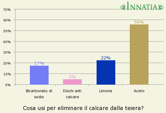 - Bicarbonato di sodio, un anticalcare molto efficace. Alcuni scelgono di pulirle con bicarbonato di sodio. Fai una pasta con bicarbonato di sodio e acqua e lascia agire sulle macchie di calcare. Il bicarbonato è un potente abrasivo che scioglie i depositi di calcare e li elimina. Aggiungi acqua prima di sciacquare e fai bollire con la soluzione di bicarbonato. Infine risciacqua per eliminare il bicarbonato ed eliminare tutto il calcare che si è staccato dalle pareti della teiera.