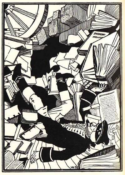 Un altro. Si tratta del disegno di libri con molti dettagli, opera di William Andrews del 1900.