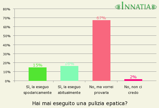 Io l'ho scoperto quando ne ho avuto bisogno. Dopo un'intossicazione di funghi in un ristorante, sono stato malissimo per settimane senza riuscire a recuperare in alcun modo. Quando ho trovato la pulizia epatica nel libro di Andreas Moritz “La pulizia epatica e della vescica” , ho visto che poteva essere proprio quello di cui avevo bisogno e l'ho messa subito in pratica.