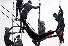 - In piedi. Schiena contro schiena. Ad un segnale, uno deve spingere verso indietro cercando di spostare l'altro.